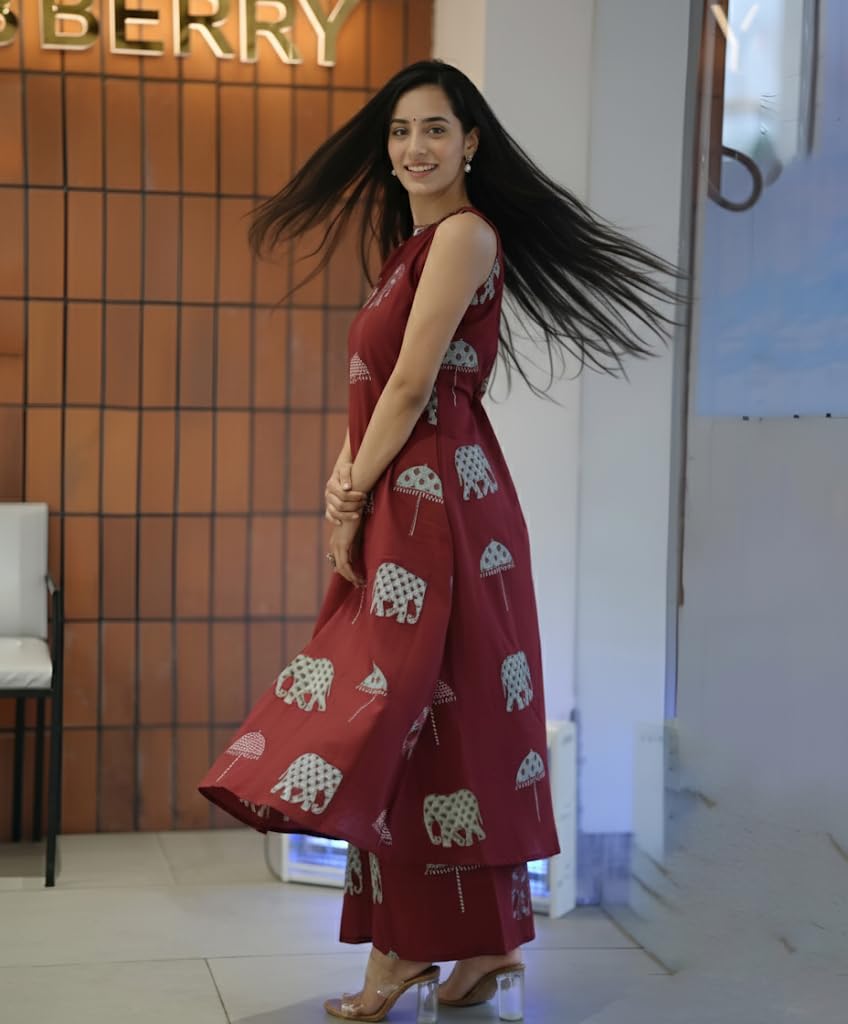 ANNI DESIGNER Women's Ethnic Co-Ord Set | Kurta Pant Set | Kurta Palazzo Set | Stylish Cotton Suit Set for Women, Festival Co-ord Set