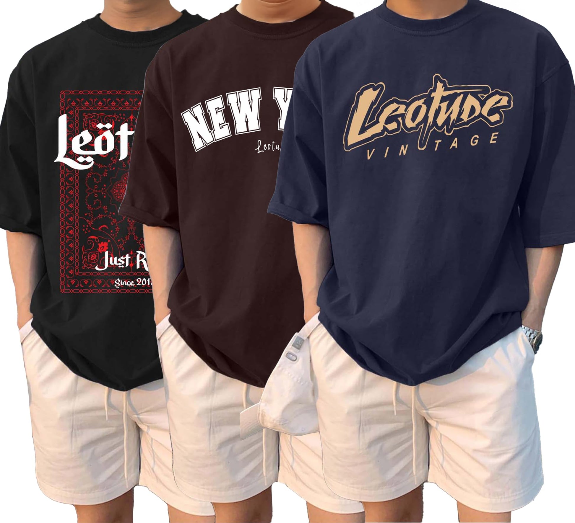 LEOTUDE Classy Half Sleeve Cottonblend Printed Round Neck Drop Shoulder Oversized Tshirt for Man