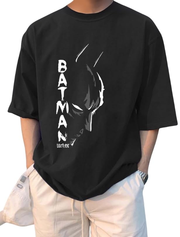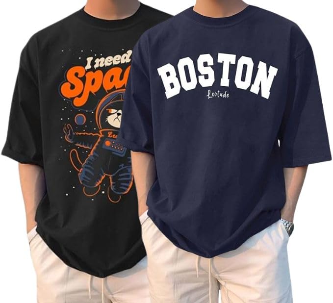 LEOTUDE Man Cotton Blend Graphic Print Round Neck Half Sleeve Drop Shoulder Oversized T Shirt (Color Navy Blue)